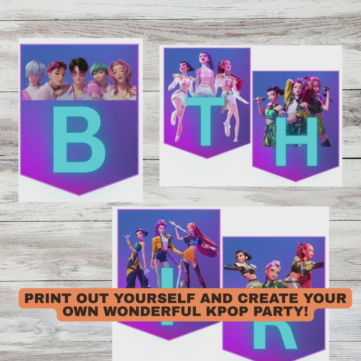 Celebrate a birthday in electrifying style with this K-pop Demon Hunters-themed birthday banner! Perfect for fans of the vibrant world of K-pop, anime, and high-energy fantasy, this banner is designed to make any celebration unforgettable.